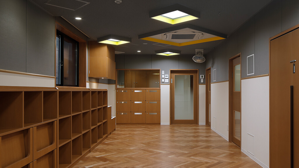 三田線・千石駅から徒歩4分と駅近の立地にある4階建ての保育園です。 エントランスには子どもたちの作品展示スペースを併設し、子どもたちの描いた絵や、製作を月に一度入れ替えて展示し、登降園の楽しみが増える工夫をしています。 各保育室には、日本の伝統色を散りばめることで年次ごとに異なる空間が楽しめ、屋上ではプールや水遊びを楽しむことができます。 園庭がない分毎日お散歩に出かけ自然に触れ、身体を思い切り動かす機会を増やしています。