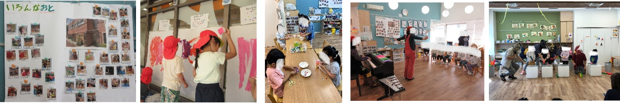 月1回、「音」に関連する活動を行う。子どもの興味・関心に寄り添いながら、日頃の保育の中でも興味を持った音活動が行えるよう、都度環境を整える。